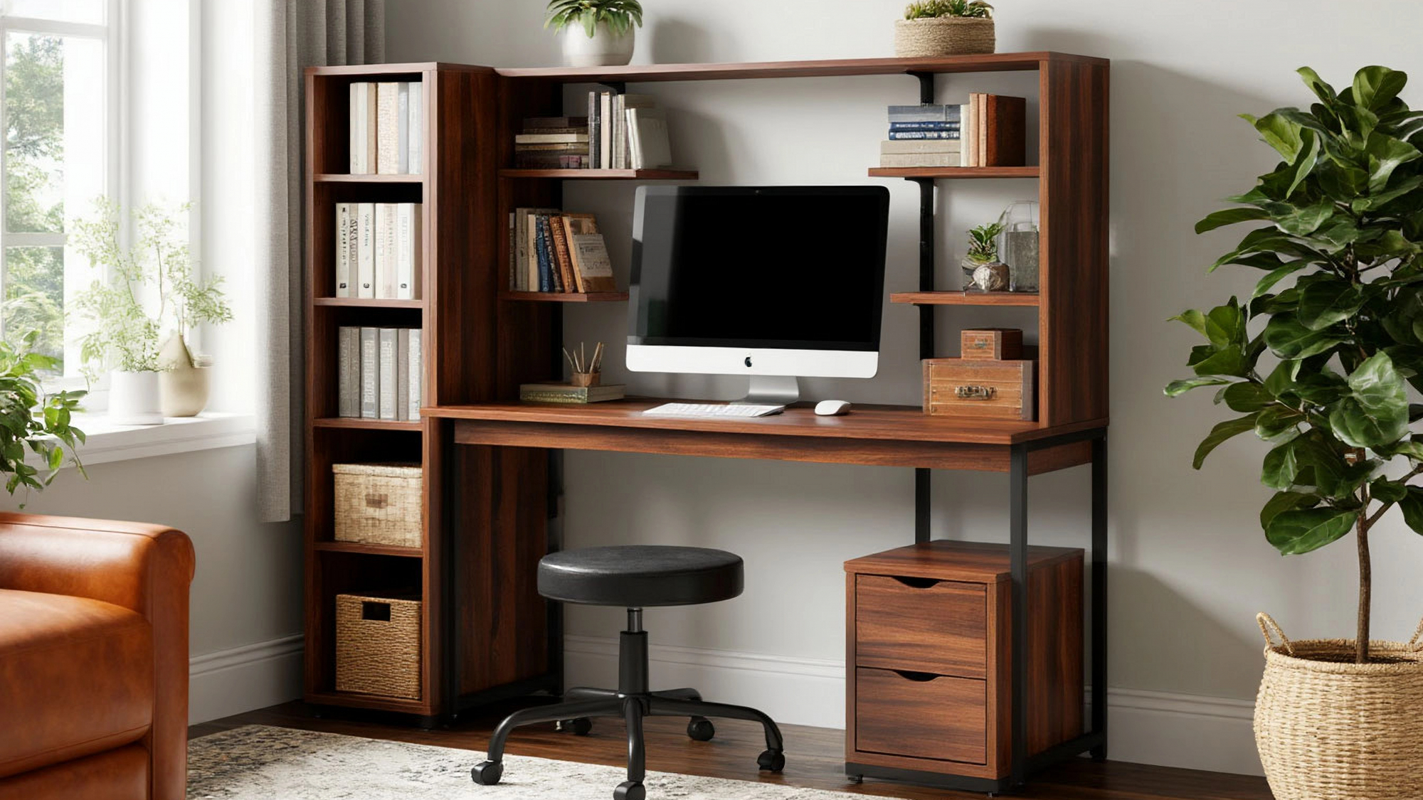 Мы рады представить вам компьютерный стол Марго — идеальное решение для создания комфортного и функционального рабочего пространства. Этот стол станет не просто предметом мебели, а настоящим центром вашего офиса или домашнего кабинета. Его стильный и современный дизайн выполнен в элегантном цвете темного дерева, который придаёт интерьеру солидность и уют. Черные элементы, гармонично вписывающиеся в общую концепцию, создают эффектный контраст и подчеркивают изысканность стола, делая его настоящим украшением вашего пространства.