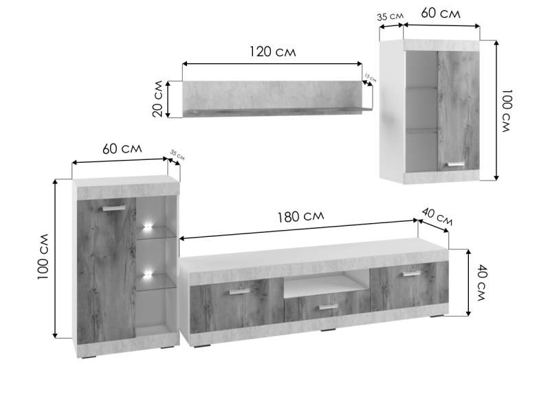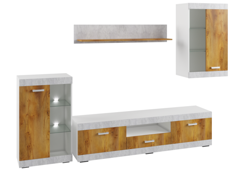 Готовые гостиные Вега цемент светлый / таксония медовая (240x40x).