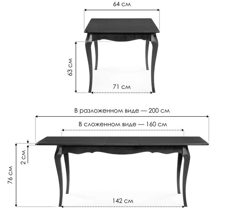 Расстояние между ножками: 142 х 71 см Толщина столешницы: 2 см